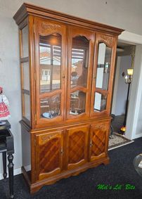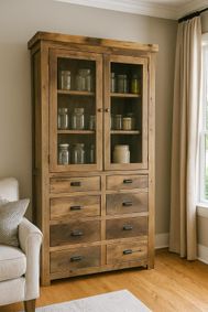 This Mid Century Modern Curio Cabinet perfectly combines style and functionality, making it an ideal piece for displaying collectibles or fine china. Its glass doors and shelving create an open, airy feel while protecting your items from dust. The warm wood tones and elegant circular side window ...