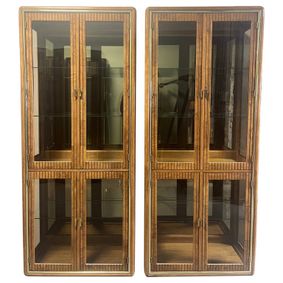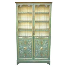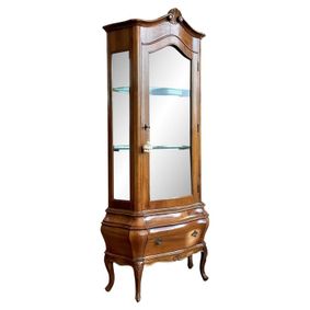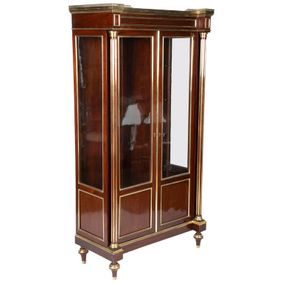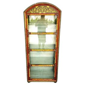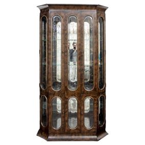 F. Linke style Louis XV Curio / Vitrine cabinet, 19th-20th century. This bombe shaped parquetry and ... Pair of modern Mastercraft black lacquered, brass and glass display cabinets or vitrines. These ... Carved Scallops Decorated Double Doors French Cupboard China Cabinet Curio MINT! ... Mid-Century Modern tall tower shape breakfront by Mastercraft.