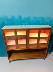 Mid Century Lighted Curio Cabinet with Glass Sides – Atomic Furnishing & Design