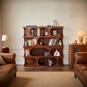 Less is more. Many people place too many items on shelves which creates visual clutter. I tend to go with 3 items or visual groupings (like books in the same color family) per shelf. Thrift shops, Etsy, and vintage shops are great options for bookends and decor. This is not the best photo, but this is my mid century style wall unit with color coodinated books and minimal items per shelf. I would style an enclosed hutch similarly as well. https://imgur.com/a/ojGxF More on reddit.com