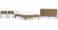 The bedframe arrived scratched and the footboard has slowly come undone; the nightstand and dresser drawers are incredibly stiff and hard to close even after lubrication; the dresser drawers arrived cracked and with missing finish on two of them; the dresser drawers themselves are incredibly tiny.