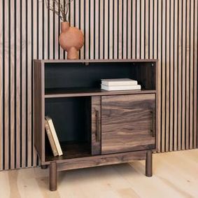 Mid-century modern apartment sofa · Leather upholstery · Innerspring pocket structure · Dense foam padding · Ships in a convenient box View All Details · $1,005.00 · (2) Made of hardwood solids, oak veneer and MDF substrate · Brown finish · 2 double-door cabinets, each with adjustable ...