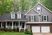 Our current plan, which we're not 100% happy with, is to paint it a darker gray with white trim. We'll also add an accent color for things like the front door and spiral staircase. We also plan to just replace the current wood board and batten siding with the same thing.
