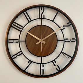 Rich mahogany wood grains + warm metal accents give this wall clock a handsome look with roots in mid-century style. A numberless face keeps you on schedule with precise-enough analog time, for an unhurried feel to match its retro look. It runs – silently – on two AA batteries. Beautiful clock but much more brown than the color shows.. Jessica. Bend, OR. Sat Sep 27 2025 ... This wall clock maximizes your wall space with a modern look.