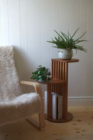 Mid-century modern side table I made. Solid red oak