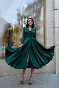 Step out in style wearing one of these stunning dresses in various shades of green. Showcasing emeralds, olives, and forest green dresses designed beautifully for outdoor event, formal gala, or party.