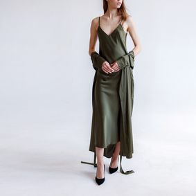Discover a collection of effortlessly elegant styles in our debut lineup—for those who dress for the moment. Dive into 21st-century self-expression with styles that exude modern allure. It's a bold tale of rebirth and intimacy, served up in a dynamic, Insta-worthy vibe. Each custom creation is cut-to-order, minimizing our carbon footprint and keeping it cool for the planet. Reviews(16) $119 · Color: olive green · Size Chart ·