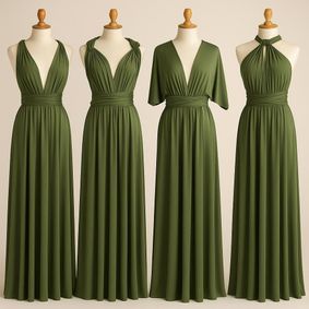 It really depends on where you're headed. For formal events, luxurious fabrics like satin, tulle, and crepe add that elevated, polished touch — perfect for evening gowns, green bridesmaid dresses, or special celebrations. Satin offers a beautiful sheen, tulle adds volume and drama, while crepe brings structure with softness. For daytime events or more relaxed settings, lightweight materials like cotton and chiffon work best. Cotton is breathable and easygoing, while chiffon flows beautifully and feels effortlessly feminine making it ideal for garden parties, brunches, or summer weddings.