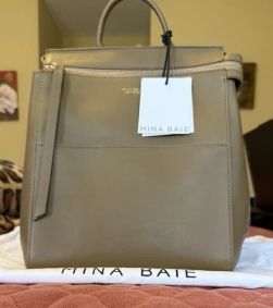 New Mina Baie Emmy (vegan) Full in CremaOpens in a new window or tab ... Mina Baie White Black Logo Detail Soft Dust Bag Cover Drawstring 21” X 26.0”Opens in a new window or tab ... Mina Baie Kinney Vegan Leather Diaper Bag Brown Tan Backpack Convertible BagOpens in a new window or tab