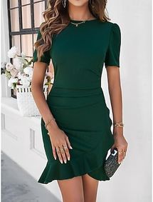 Cocktail Dress, Office Dress, Green Dress, Midi Dress, Formal Dress, Summer Clothing, Elegant Dress, Short Sleeve Dress, Prom Dress - Etsy
