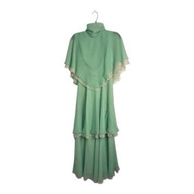 Mint Green Dress 60s Vtg Pastel Green Silver Lace Long ...