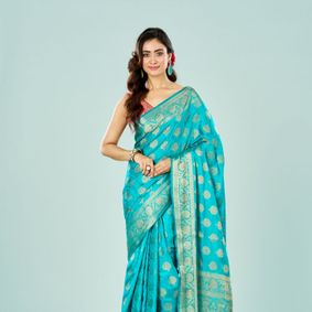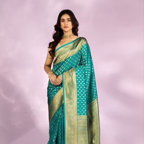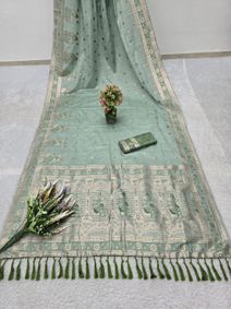 Women's Ethnic Clothing Online ... effortlessly. ... Turn heads at every gathering with this mint-green silk saree featuring intricate silver paisley motifs and delicate gold jewelry....