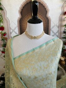 Our mint and pista green sarees are perfect for daytime functions and summer weddings. The soft, pastel hues exude a sense of freshness and tranquillity, making them a great choice for bridesmaids or guests at a garden wedding.