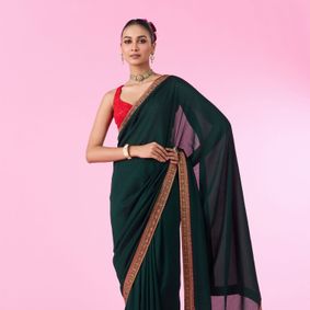 Shop Green Sarees in silk, georgette & designer styles. Find emerald, bottle, pastel & peacock green sarees with blouses. Fast USA & worldwide shipping!
