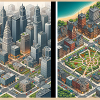 Create professional city illustrations for urban planning, smart city concepts, city maps, architectural diagrams, zoning, infrastructure, education, presentations, and more. Use Icograms to design detailed city layouts with roads, buildings, parks, and public transport visuals.