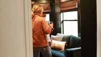 November 12, 2025 - Curb any design indecisiveness with a color-drenched palette for your modern living room. Here, designer Amber Lewis saturated this TV room in a soothing sage green, right down to the sofa upholstery.