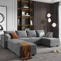 Not only a U-shaped sofa but also a home decor. The large modular sofa combines the upholstered cushions and the clean lines of a modern sofa into one sofa and has plenty of room for friends, family, pets, and pillows.