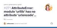 This explains why the below code fails - you only import urllib and nothing seems to import urllib.parse:
