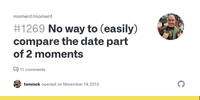 moment('2010-10-20').isAfter('2010-01-01', 'year'); // false moment('2010-10-20').isAfter('2009-12-31', 'year'); // trueAs the second parameter determines the precision, and not just a single value to check, using day will check for year, month and day.