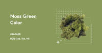 In the RGB (Red, Green, Blue) color space, which is used for digital colors, Moss Green has 40%% Red, 55% Green, and 22% Blue. Moss Green has 87° Hue, 60% Saturation, and 55% Value in the HSV (Hue, Saturation, Value) color space, which is another way to represent digital colors.