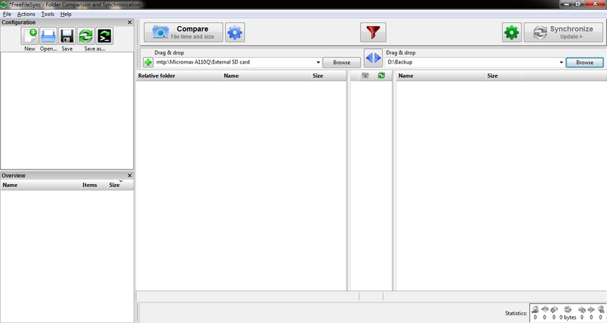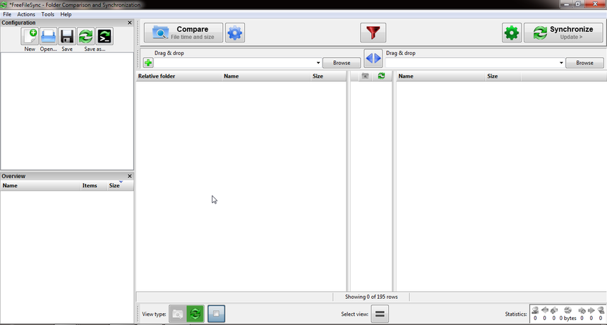 C:\Program Files\FreeFileSyncand a relative one would be for 32-bit Windows 7. Execute the FreeFileSync.exe (right-click → Run as Administrator).(On my machine this program freeze out for few seconds during its startup but eventually stabilizes and doesn't behaves alike.) The default screen for v7.0 would look like: