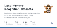 GitHub - juand-r/entity-recognition-datasets: A collection of corpora for named entity recognition (NER) and entity recognition tasks. These annotated datasets cover a variety of languages, domains and entity types.