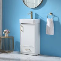 Popity home 18 Inch Small Bathroom Vanity, Narrow Bathroom Vanity with Sink Combo, White Ceramic Rectangular Vessel Sink for Small Space, 1 Door 1 Drawer Vanities with Golden Handles : Amazon.ca: Home