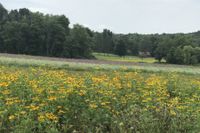 Besides this natural lawn, we have many native perennial flowers planted, a maple tree and we're planting Eastern Red Cedars, which make for a great food source and shelter for many species of birds and mammals.