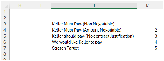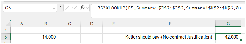 =IF(F5="Keller Must Pay-(Non Negotiable)",B5*Summary!$K$3,IF(F5="Keller Must Pay-(Amount Negotiable)",B5*Summary!$K$4,IF(F5="Keller should pay-(No contract Justification)",B5*Summary!$K$5,IF(F5="We would like Keller to pay",B5*Summary!$K$6,IF(F5="Stretch Target",B5*Summary!$K$7,"")))))