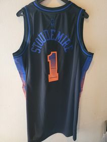 The black jersey features the iconic Knicks logo and is made with high-quality materials to ensure comfort and durability. Perfect for any basketball fan, this jersey is officially licensed by the National Basketball ...