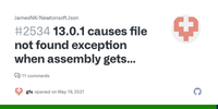May 19, 2021 - When using 12.0.3 I have no issues. When I updated to 13.0.1 I get a FileNotFoundException on this [1] constructor as .NET attempts to load the Newtonsoft.Json dll. The message states cannot find an assembly with version 13.0.0.0, which is what is noted in the deps.json.
