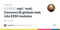 repl / eval: CommonJS globals leak into ESM modules · Issue #30842 · nodejs/node