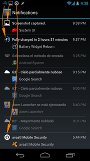 - The screen Notifications shows the notification history we are talking about. In this screen currently active notifications appear in full intensity, while dismissed ones are dimmed.