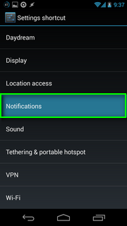 - You'll see a screen where you can select the type of settings this shortcut will open. Select Notifications.