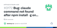 Description When installing @anthropic-ai/claude-code globally via npm on macOS (with Node.js installed via Homebrew), the claude command is not correctly added to the PATH. The installation create... More on github.com