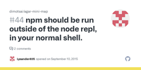 For Windows users, run npm commands from the Command Prompt (cmd.exe), not Node.Js (node.exe). So your "normal shell" is cmd.exe. (I agree this message can be confusing for a Windows, Node newbie.)
