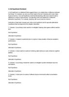 This worksheet focuses on formulating null and alternative hypotheses in various research scenarios. It helps students understand the concept of hypothesis testing by providing examples and explanations for each scenario.