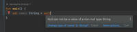 fun retrieveString(): String { //Notice that this type isn't nullable