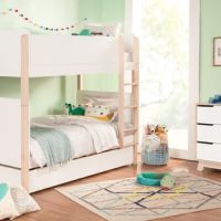 The no nonsense design of the Norddal bunk makes it an easy to fit for any space. When the kids start asking for their own room the beds can be divided into separate twin beds. Nurseryworks Duet bunk bed had lots of cubbies to store trinkets, toys and blankets.