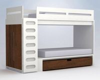 January 23, 2010 - * three under bed drawers or trundle with custom mattress * drawer conversion kit available for top bunk if using beds unstacked * two cabinets * upper cabinet is accessible from top bunk * cubbies become separate shelving unit when beds are unstacked