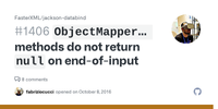 `ObjectMapper.readTree()` methods do not return `null` on end-of-input · Issue #1406 · FasterXML/jackson-databind