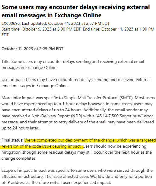 Which is a known issue, if you are the administrator, you can search EX680695 in the Dashboard and check the latest update of the issue. Some users reported that this problem has been solved. If the problem still exists, please wait patiently.