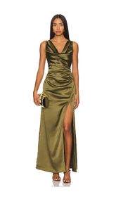 Just a few: https://www.lulus.com/products/distinctive-charm-olive-green-satin-asymmetrical-midi-dress/2182536.html https://www.lulus.com/products/thistle-green-multi-satin-cowl-neck-midi-dress/2408651.html https://www.lulus.com/products/gorgeous-whimsy-olive-pleated-off-the-shoulder-maxi-dress/2518931.html https://www.lulus.com/products/seriously-sensational-olive-green-strapless-tiered-maxi-dress/2476351.html https://www.lulus.com/products/compelling-romantic-olive-green-ruffled-tiered-maxi-dress/2415291.html https://www.lulus.com/products/vacay-beauty-olive-scarf-print-one-shoulder-tie-strap-midi-dress/2471251.html