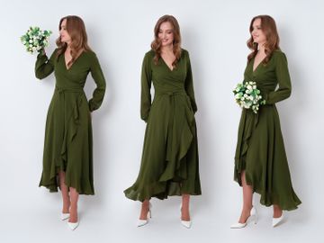 Olive Green Formal Dress With Sleeves - Etsy Canada