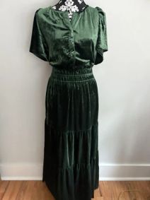 Budget? Not sure what level of formality either but here is a nicely priced, long sleeve sage green dress with a variety of sizes: https://ivycityco.com/products/andie-dress-in-sage A lot of options for that color with different types of sleeve: https://www.ever-pretty.com/collections/sage-green-formal-dress Amazon: https://a.co/d/7rCsRcp More on reddit.com