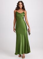 Satin Olive Green Dress · Satin Cowl Neck Dress Outfit · Sleeveless Slip Dress For Prom · Elegant Ruched Slip Dress For Prom · Green Sleeveless Slip Dress For Prom · Green Silk Satin Party Dress · Green Silk Dress For Banquet · Elegant Green Satin Silk Dress · Satin Green Dress · Green Spaghetti Strap Slip Dress For Formal Occasions · Emerald Green Clothes Aesthetic · Fashion Design · Green Bridesmaid Dresses Silk · Long Silk Green Dress ·