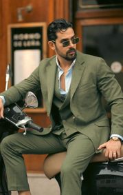Styling tips for an olive-green suit