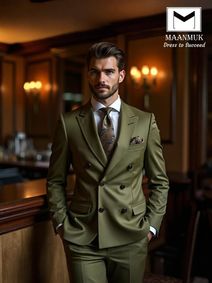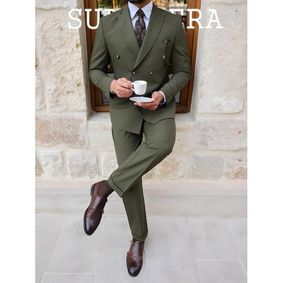 Elevate your style quotient with our meticulously crafted Olive Green Double Breasted Suit for men. This timeless piece of formal attire seamlessly combines sophistication and contemporary fashion trends. Expertly tailored to perfection, this double-breasted suit exudes confidence, making it a must-have addition to your wardrobe.Crafted from premium materials, this olive green suit not only ensures comfort but also guarantees durability. The luxurious feel of the fabric enhances your overall presence, whether you're attending a wedding, a business meeting, or a special occasion.Key Features:.D