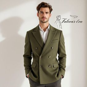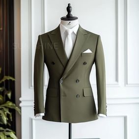 Men's Olive Green Double Breasted Suit Jacket | Made-to-Order Suits for Weddings & Events