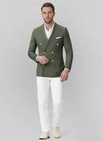 White Olive Green Cotton Double Breasted Suit